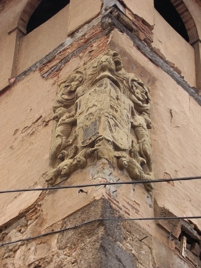 VIVIENDA CALLE SANTIAGO, 10Escudo de finales del s. XVI en lo que ahora es un edificio del siglo XX y antes se describía en el inventario como “casa de dos plantas, de mampostería y tapial, con ingreso de medio punto y escudo...” Se conserva el escudo cuarteado en cruz de torre entre cuatro B, tres leones rampantes a árbol, águila coronada explayada, y barra con bordura de cadenas. Todo sobre Cruz de Calatrava.
