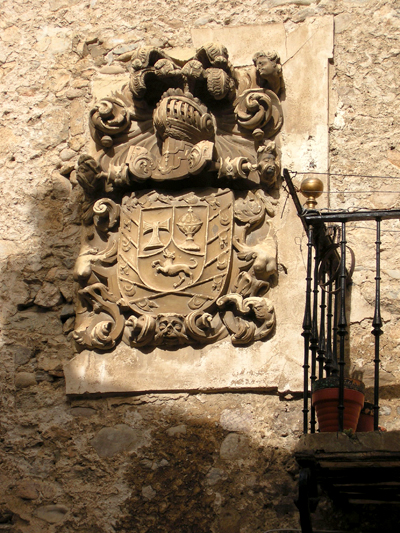 CASA DE LA CALLE REAL, 23Edificio del Siglo XVII con escudo del mismo siglo cuarteado en cruz, sobre la de Santiago, de águila explayada coronada, castillo de tres torres, dos leones rampantes y tres barras. Alero de canes de madera tallada.