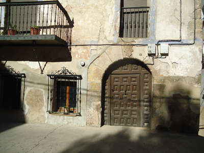 EDIFICIO DE LA PLAZA DEL OLMO, 2, 3 Y 4:Edificio del Siglo XVII con alero de madera tallada. Escudo del s. XVII con castillo de tres torres y bordura de ajedrezado con leyenda difícil de leer.