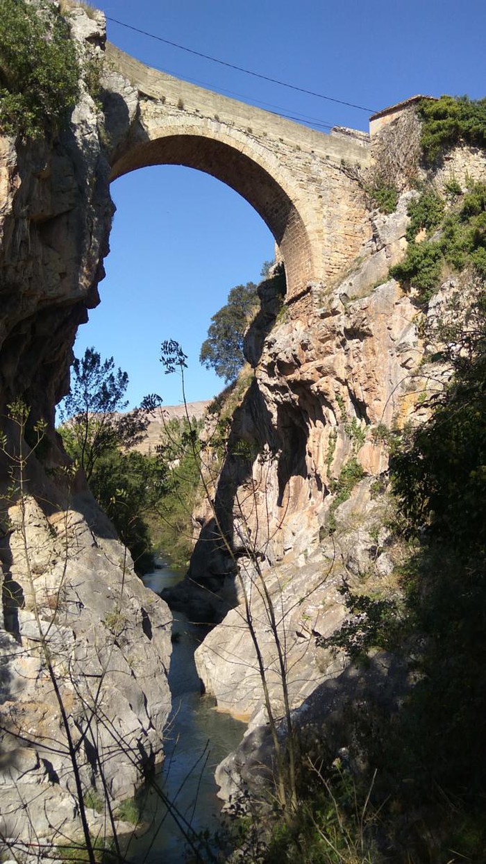 Y entre los Riscos, el río, y sobre el río el Puente. ¡Madre de Dios qué puente! es la involuntaria expresión que suele venir a los labios del que se asoma al pretil y en el abismo contempla la corriente saltarina en el tajo del Najerilla. Y con ese nombre se quedó: Puente de la Madre de Dios.