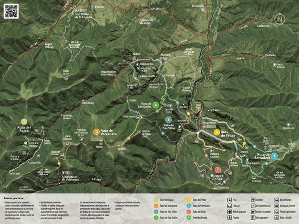 Son 95 km de recorridos señalizados en 7 rutas, que posibilitan la creación de otras múltiples opciones cuando se combinan con el GR-93, el GR-190, el Sendero del Salto del Agua de Matute o el Sendero de Valvanera. Todas las rutas tienen un atractivo paisajístico importante y todas ellas presentan desniveles propios de una zona de montaña, por ello, es necesario adecuar el recorrido a nuestras condiciones físicas.